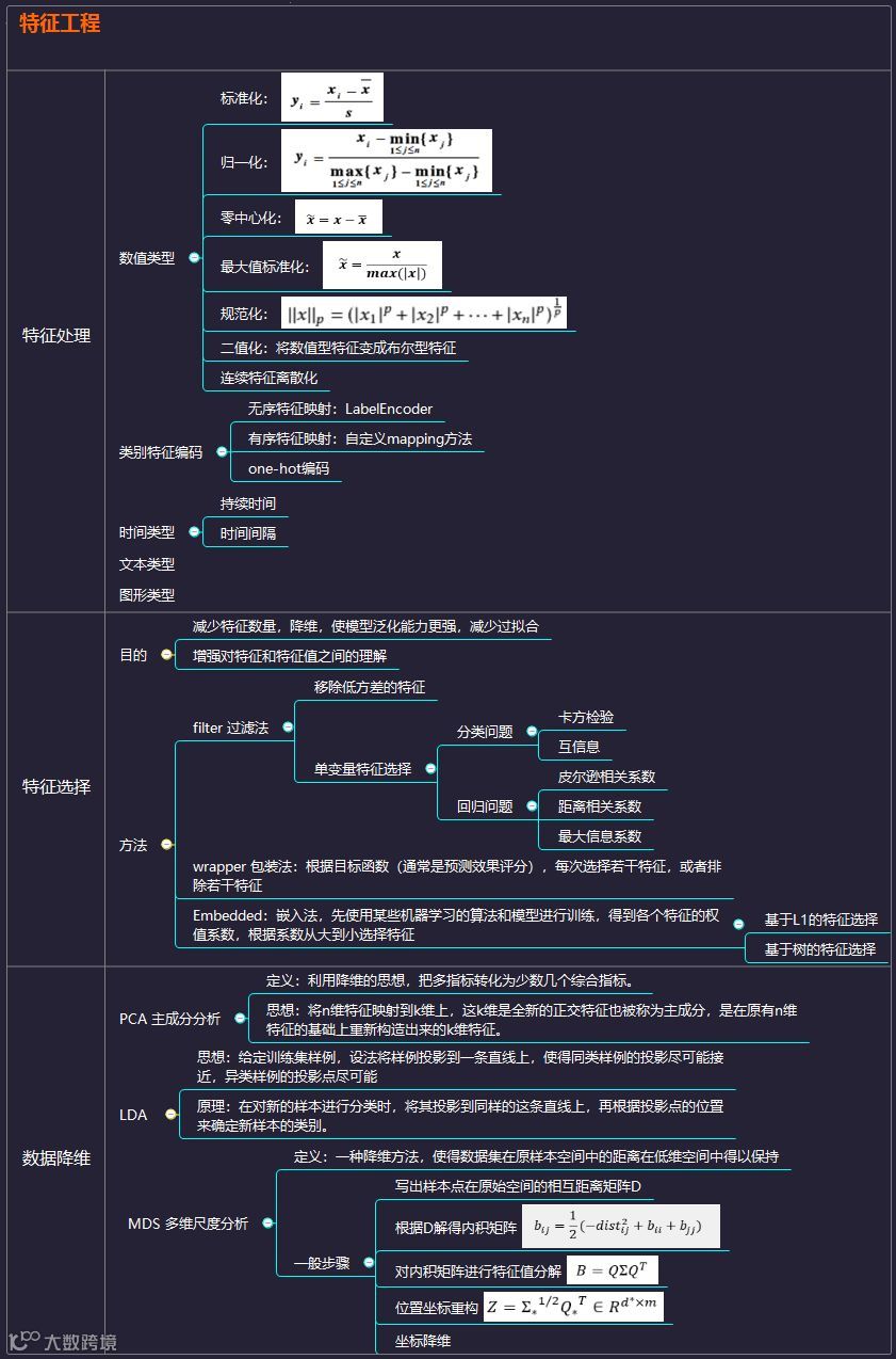 ·特征处理:特征总体分为数值型、类别型、时间型、文本型等几个类型 ,特征处理需要将这些类型的特征进行归一化、标准化等处理。