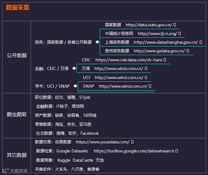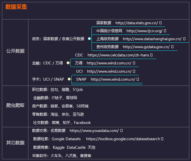 原始数据通过各种渠道收集而来,公开数据源是获取有效数据的捷径,这些数据大多经过相关机构的收集和整理并经过分类再公布出来,数据来源可靠,信息丰富。