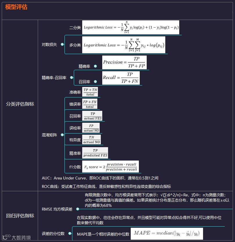 评估指标是把"尺子",用来评判模型优劣水平的算法,不同的机器学习模型有着不同的"尺子"。