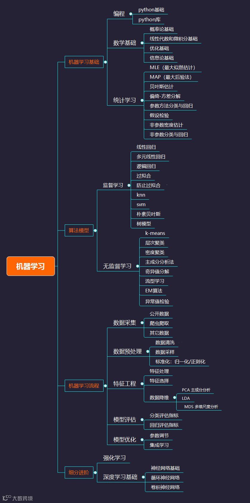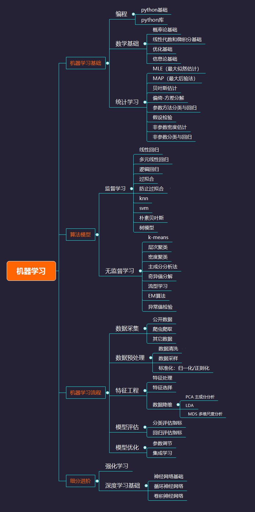 以上就是机器学习完整的学习路径,这个框架确实有一些庞大和复杂,因为它需要强大的数学知识做支撑,并包含了大量的算法和理论。