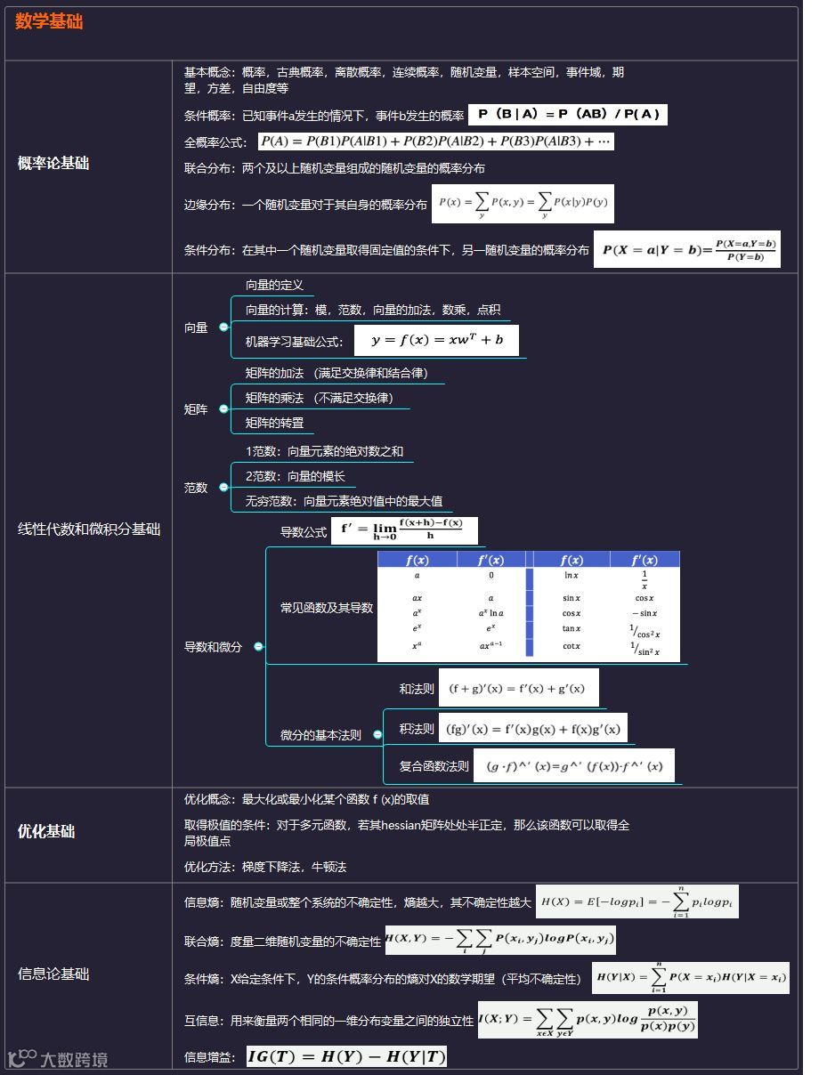 优化基础和信息论也需要一定的了解,因为它们会在你面对复杂问题时为你提供思路。