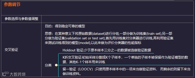 对训练集再次进行切分,得到训练集以及验证集,通过训练集训练得到的模型,在验证集验证,从而确定超参数。(选取在验证集结果最好的超参数)