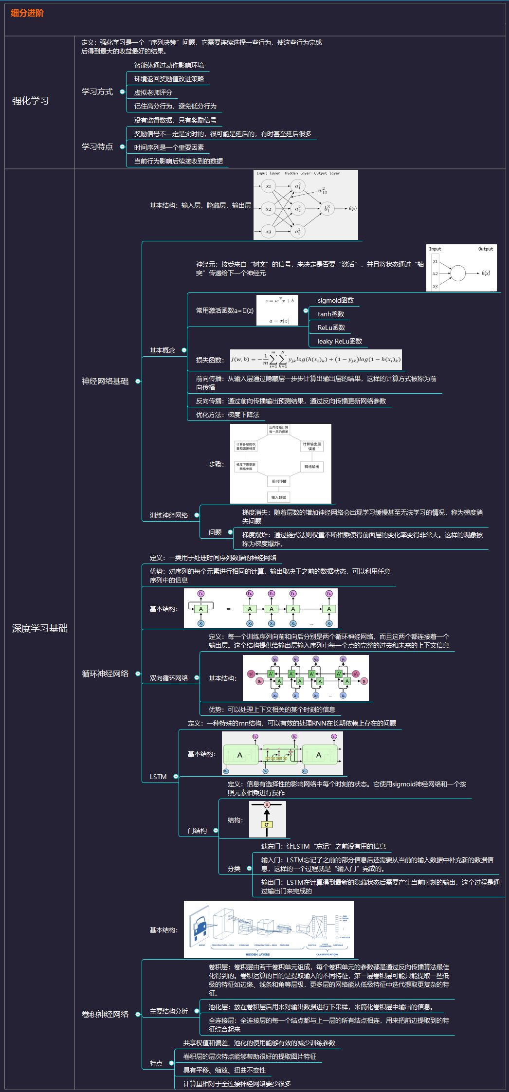 ·强化学习:又称再励学习、评价学习,是一种重要的机器学习方法,在智能控制机器人及分析预测等领域有许多应用。
