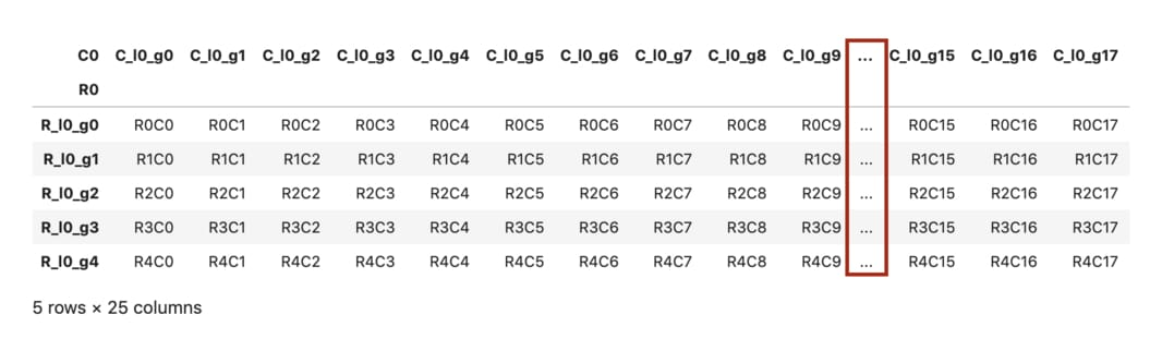 有时候一个DataFrame 里头的栏位太多, pandas 会自动省略某些中间栏位以保持页面整洁: