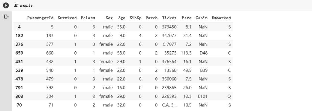 比方说针对下面这个只有10笔数据的DataFrame,你想要跟上一节一样把Fare栏位弄成只有小数点后一位,但又不想影响到其他DataFrame或是其他栏位: