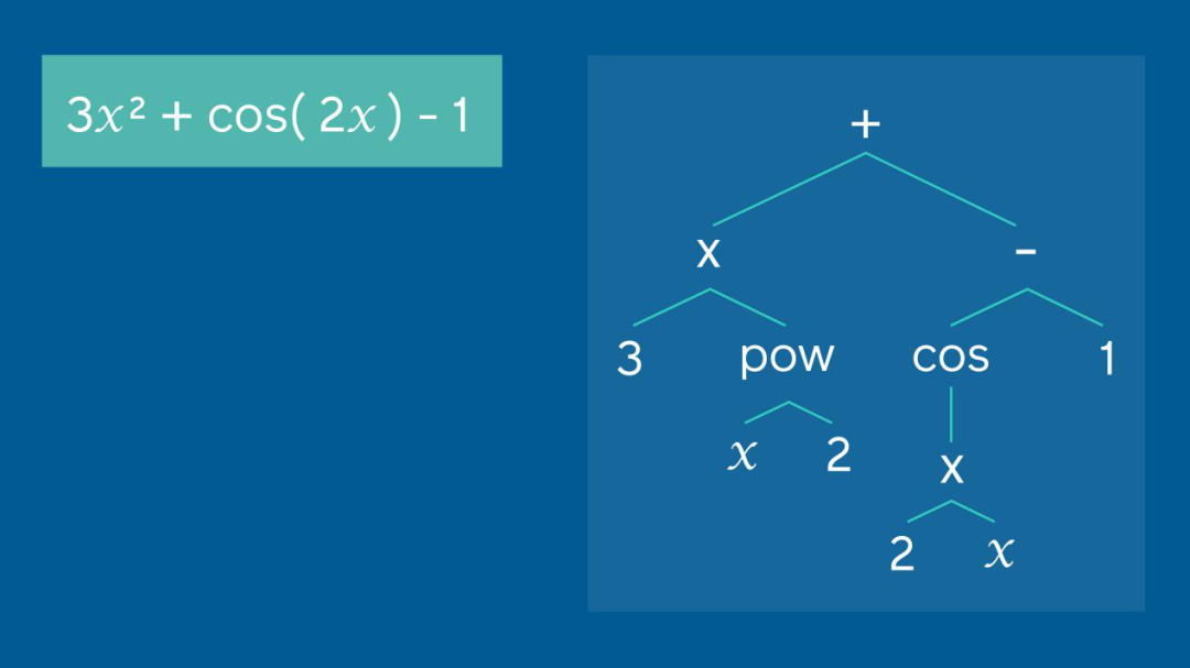 作为示例,我们的方法将展示如何把左侧的现有方程扩展为可以用作翻译模型输入的表达式树。对于该方程,输入到模型中的预序列为:(加,乘,3,乘方,x,2,减,余弦,乘,2,x,1)