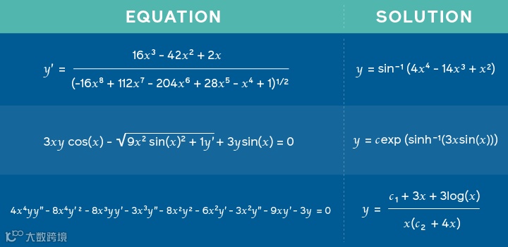 我们的模型将左侧的方程式(Mathematica和Matlab都无法求解的方程式)作为输入,并且能够在不到一秒钟的时间内找到正确的解决方案(如上图所示)。