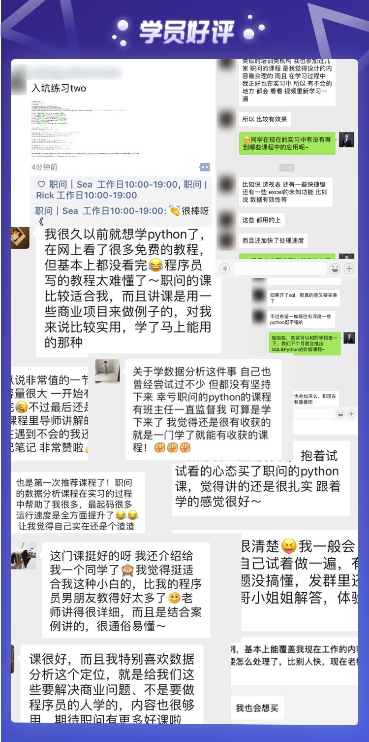 3. 零基础也能轻松上手学习,课程抛开枯燥理论,直接从项目中跟着做数据分析,用「解决问题」倒逼「技能学习」,再不用担心学完没处用,学员好评多多!