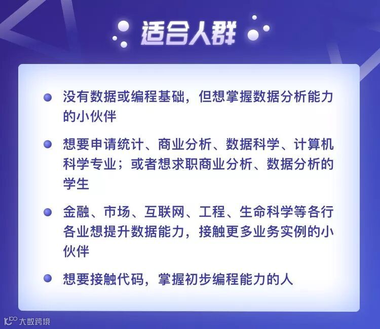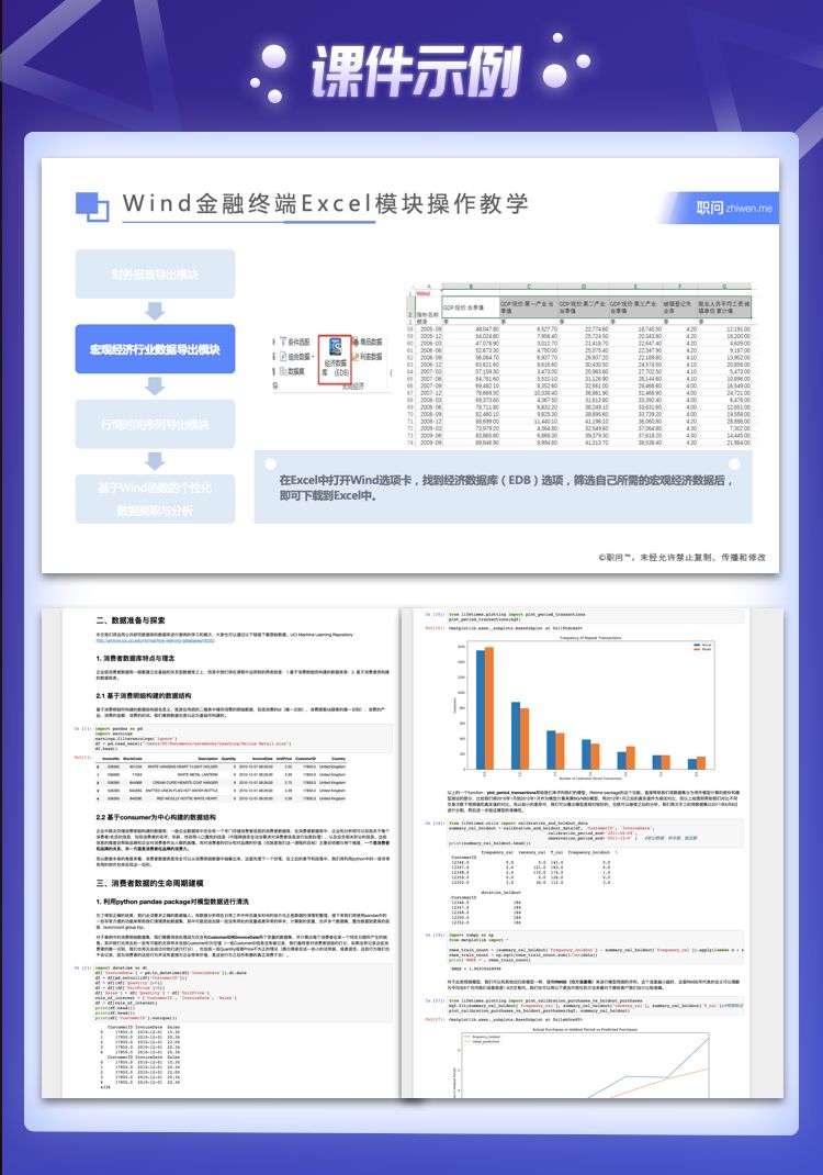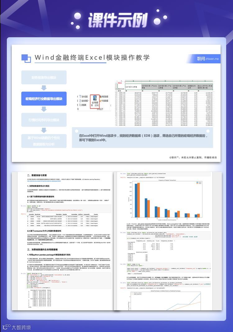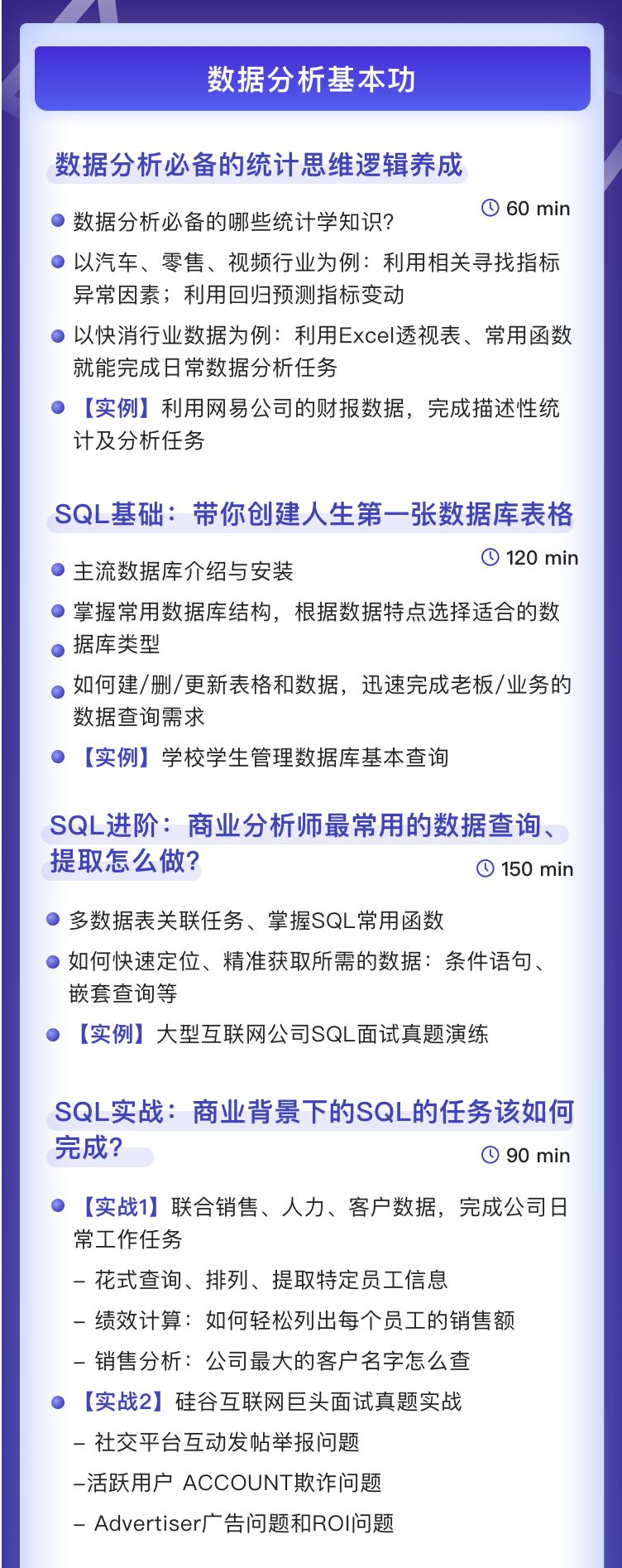 4. 20+小时丰富案例演示,涉及金融、电商、零售、互联网等领域,覆盖商业分析师、金融分析师、行业研究、用户运营、产品经理等岗位的数据分析工作。