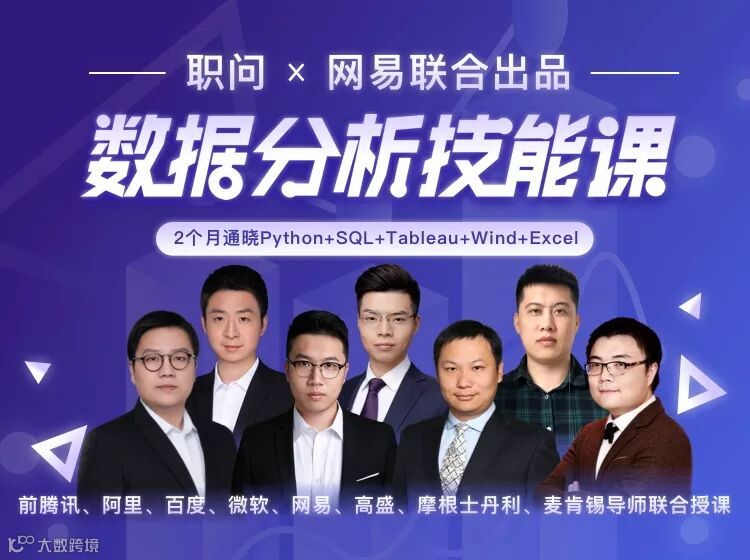 为了解决这些学习问题,职问联合网易,邀请到了职业经历遍及腾讯、阿里、百度、网易、高盛、摩根士丹利、麦肯锡的多名资深数据分析师,推出了这门「职问X网易数据分析技能课」。