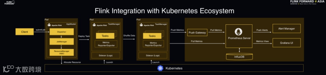 此外还有一个重要的方向是 Flink 对云原生生态的支持,具体来说就是与 Kubernetes 生态的深度融合。Kubernetes 环境可以在 multi-user 的场景下提供更好的隔离,对Flink在生产的稳定性方面会有所提升。Kubernetes 广泛应用在各种在线业务上,Flink 与 Kubernetes 的深度融合可以在更大范围内统一管理运维资源。Kubernetes 生态本身发展很快,可以给 Flink 在生产中提供更好的运维能力。后面 Lyft 和其他企业在分享中也提到希望 Flink 对 Kubernetes 可以原生地支持,也有以上这些方面的考虑。Flink 在 1.10 版本发布后可以原生地运行在 Kubernetes 之上。