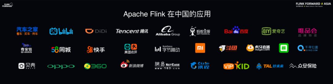 经过几年的发展,Flink 已经成为 Apache 最活跃的社区和在 Github 上访问量前三的项目。Github 的星数(代表项目受欢迎程度)在 2019 一年之内翻了一番。Apache Flink 在中国本土也更加的普及,下图列出了一些使用 Flink 作为实时计算解决方案的中国公司 logo。