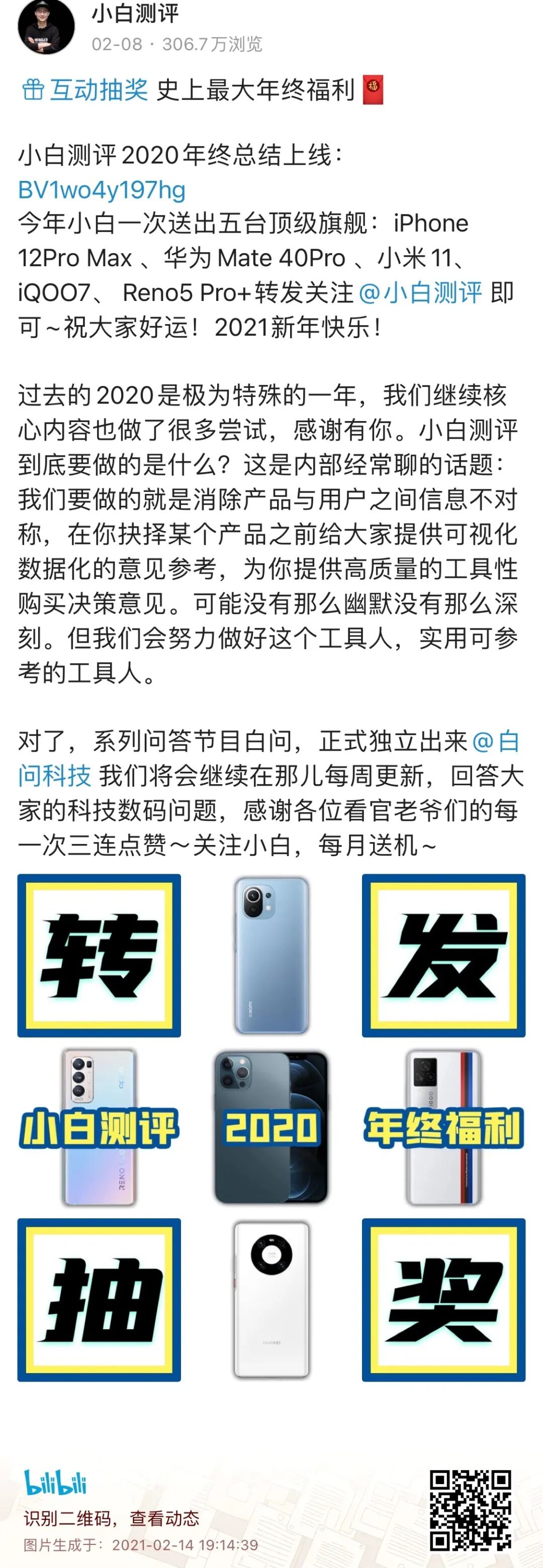 【福利】小白测评新年礼物抽奖合辑 12ProMax/Mate40Pro等你