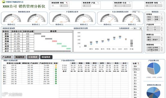我们管这种多维的、交互式操作的、以可视化图表而非表格形式为主要呈现形式的业务数据分析成果叫“商业智能”分析报表。我们常听到的XX分析仪、XX仪表板、XX驾驶舱、XX大屏等都属于商业智能范畴。