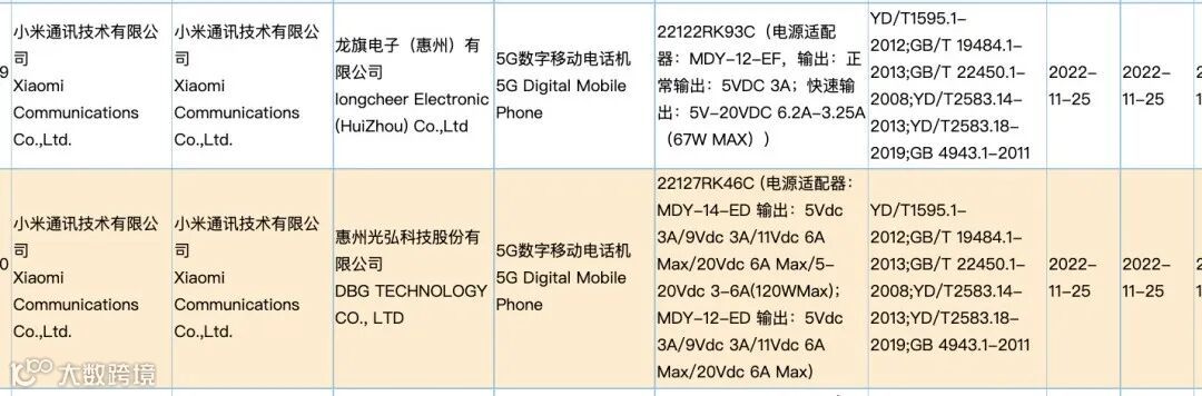 最后是Redmi这边,早前小米型号为23013RK75C的5G新机在11月7日获认证,配备67W有线充电。爆料称其可能对应Redmi K60标准版,现在3C认证又出现了几台新机,似乎也是Redmi K系列的成员。