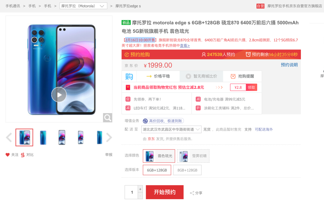 截至目前,搭载高通骁龙870处理器的上市机型仅Motorola edge S一款,其月2月3日迎来首销,但很快就售罄了,今天官方宣布了新一轮开售时间。