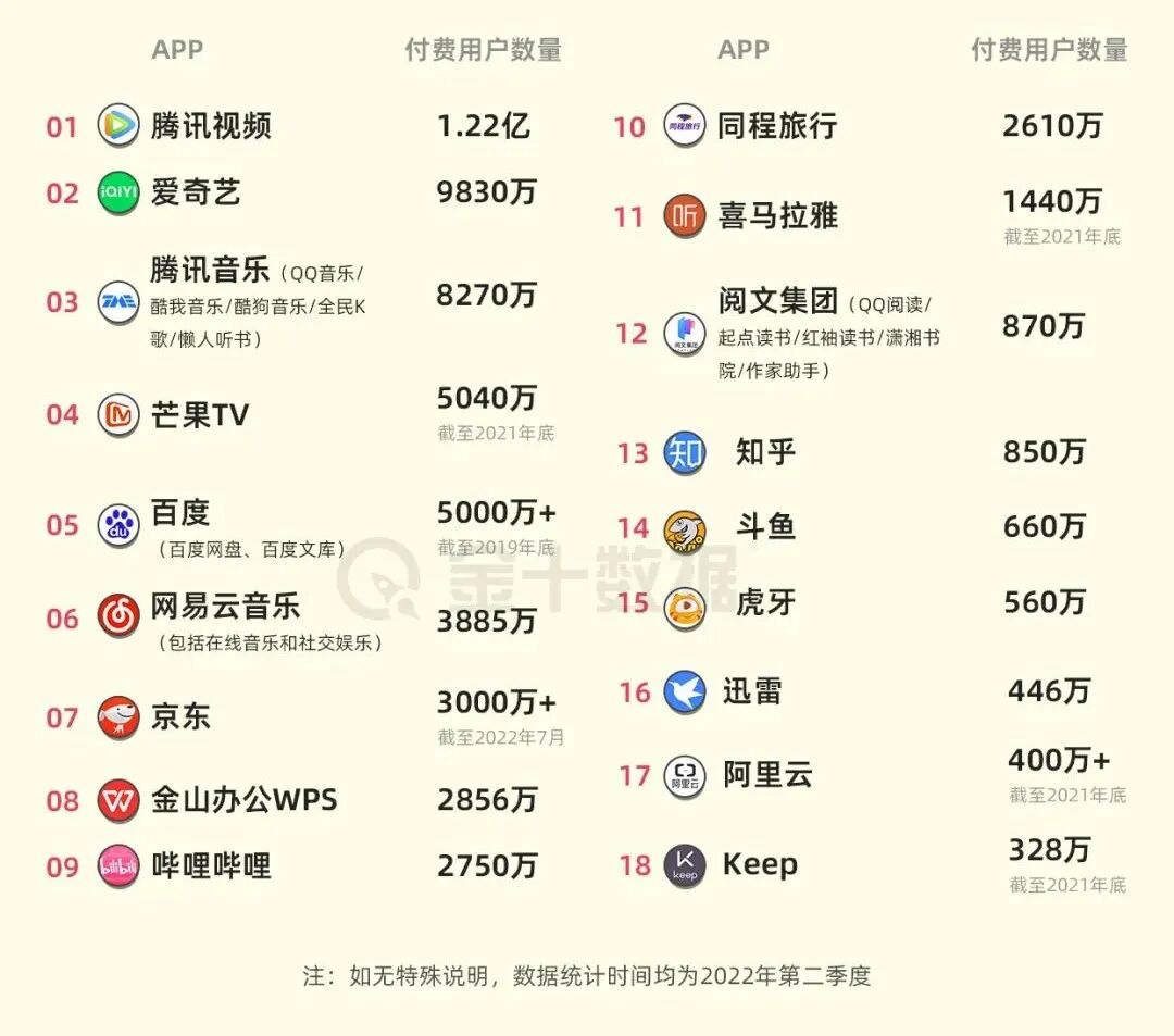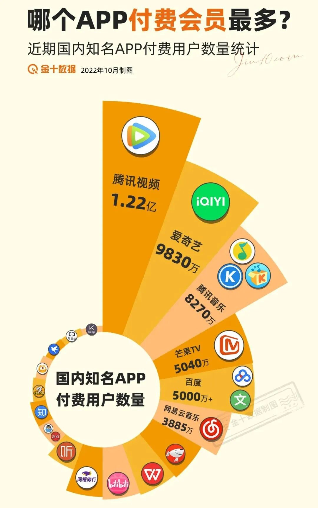 比较奇怪的是,爱优腾三家主流视频平台之一的优酷没有出现在这张榜单中,目前暂时不清楚原因。粗略算了下,各种视频平台基本都有全年开会员,加上一些其它App,累计算下来订阅金额也是一笔不小的钱。你有订阅哪些App平台的会员?资费均摊到每个月大概多少?