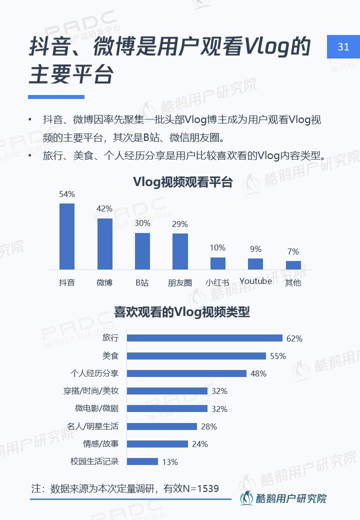 4、Vlog在短视频用户中的渗透率低,Vlog覆盖的是短视频用户中的小众用户