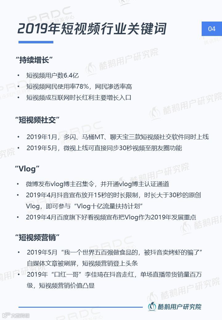 酷鹅用户研究院(微信ID:kueclub)特开展短视频专项研究,全面解读2019短视频行业发展新趋势、用户行为与行业机会点。