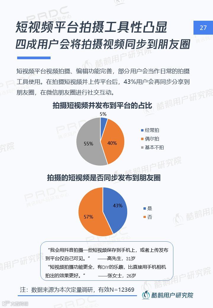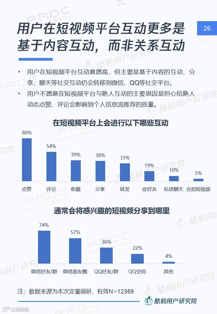 用户在短视频平台社交意愿低,用户之间的互动主要是基于内容层面的互动,私信聊天、分享等社交需求仍会转移到微信等社交平台满足。