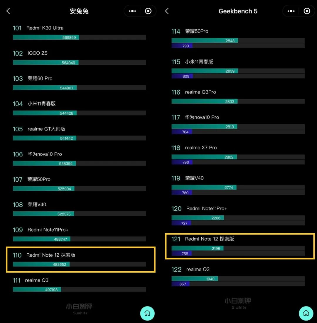【新机】小白测评数据库更新 新增RedmiNote12探索版实测数据