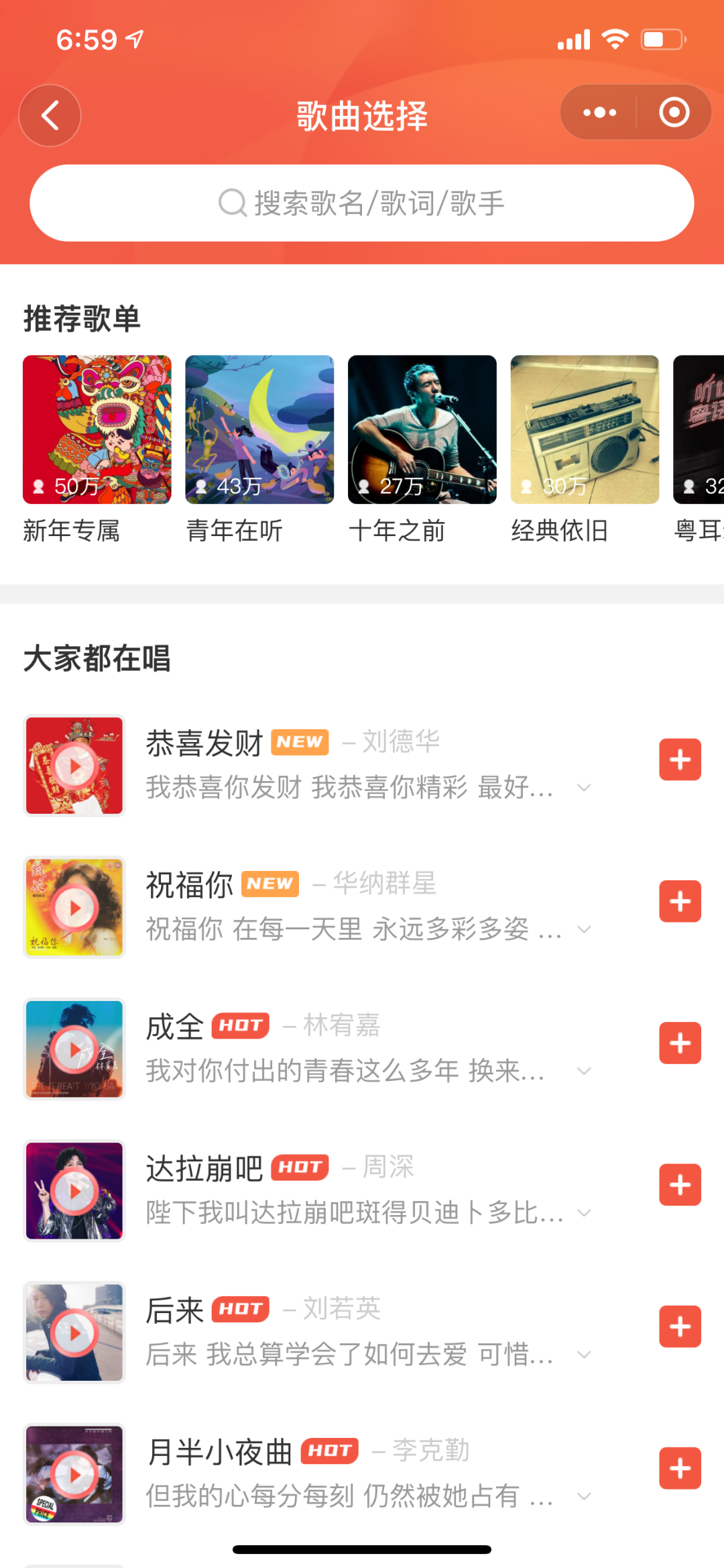 发红包先选歌曲,曲库非常全,想让别人唱啥就唱啥!
