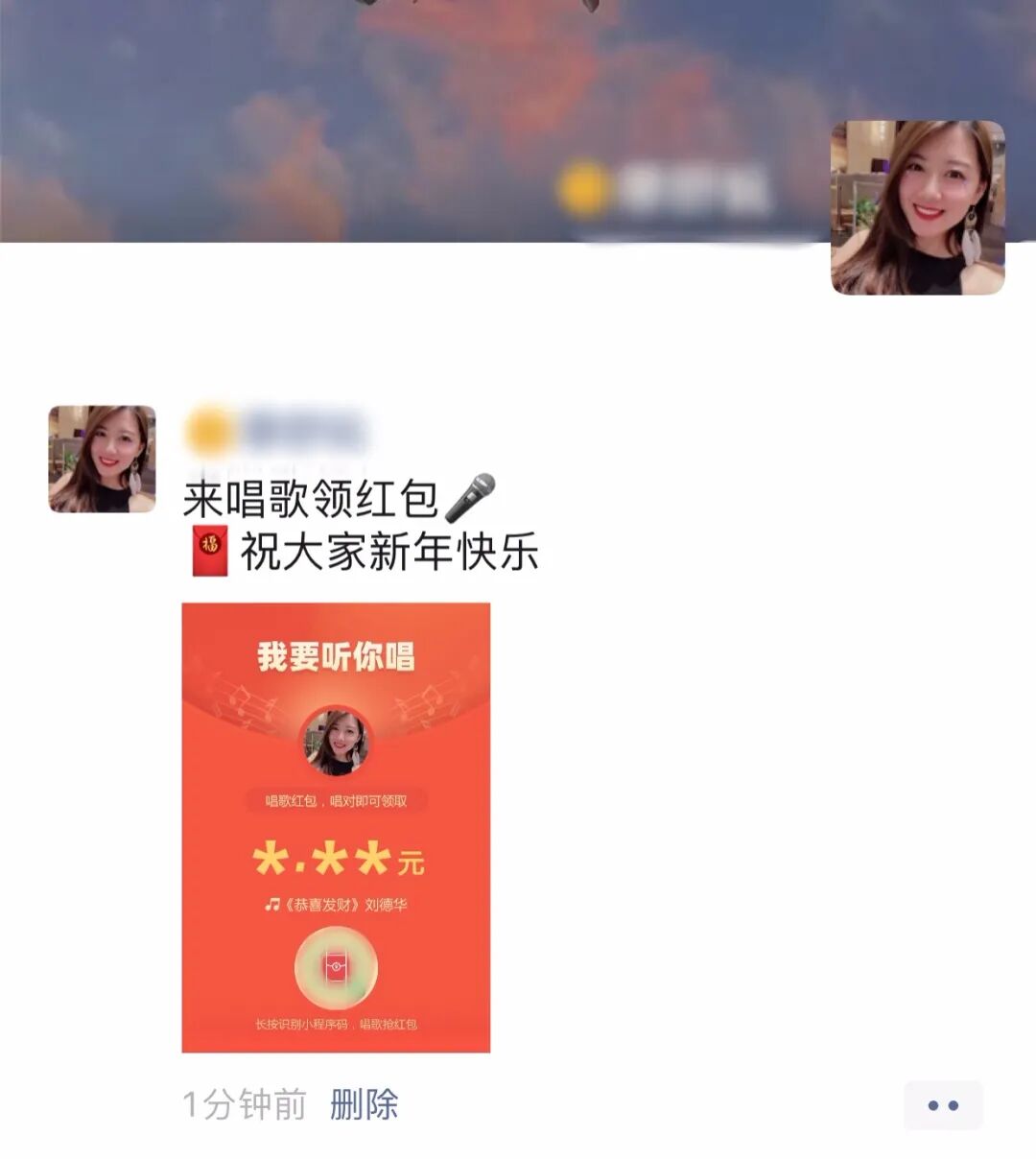 点击下方小卡片即可发唱歌红包