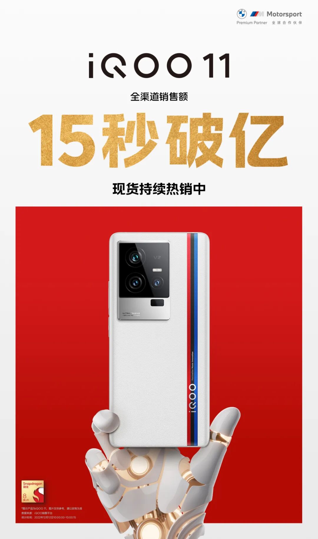 iQOO官方公布的战报显示:iQOO 11首销全渠道销售额15秒破亿元。