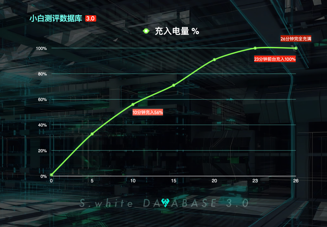 小米13 Pro充电速度实测:4820mAh电池、120W有线充电,10分钟充入电量56%,23分钟前台充入100%(实际充入电量96.22%),完全充满总用时26分钟。