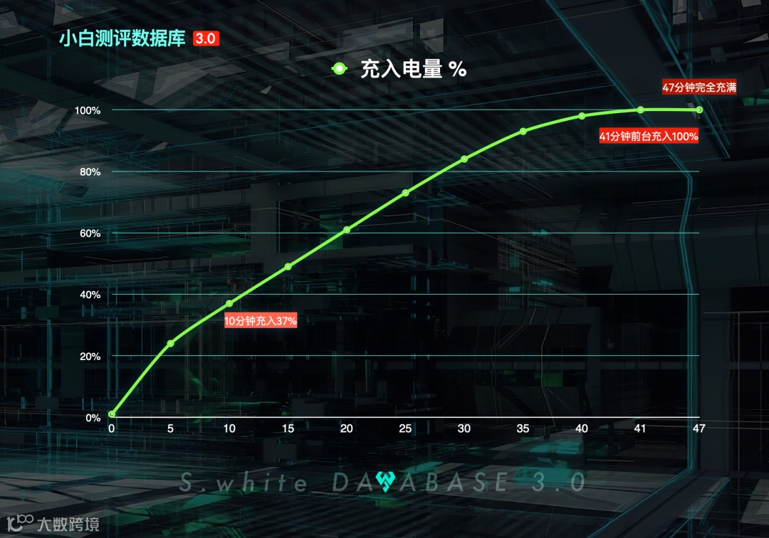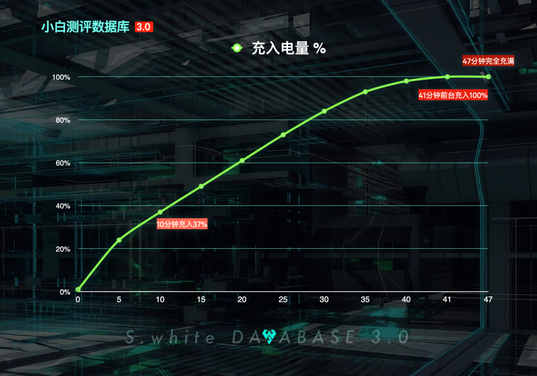 小米13充电实测:4500mAh电池、67W有线充电,10分钟充入37%,41分钟前台充入100%(实际充入96.74%),完全充满总用时47分钟。