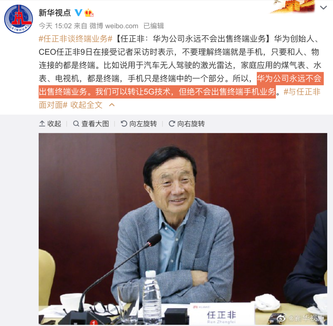 最后是华为这边的消息,据新华视点消息,今天2月9日上午,华为创始人、CEO任正非在山西太原出席了“智能矿山创新实验室”揭牌仪式,在接受采访时回应了外界关心的几个问题。
