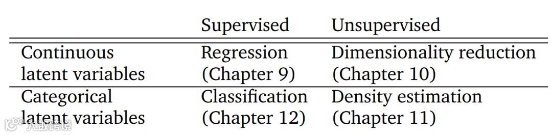 本书第二部分介绍了机器学习的四大支柱,如下表所示。表中的每一行区分了问题的相关变量是连续还是类别。我们解释了如何将本书第一部分介绍的数学概念应用于机器学习算法的设计中。