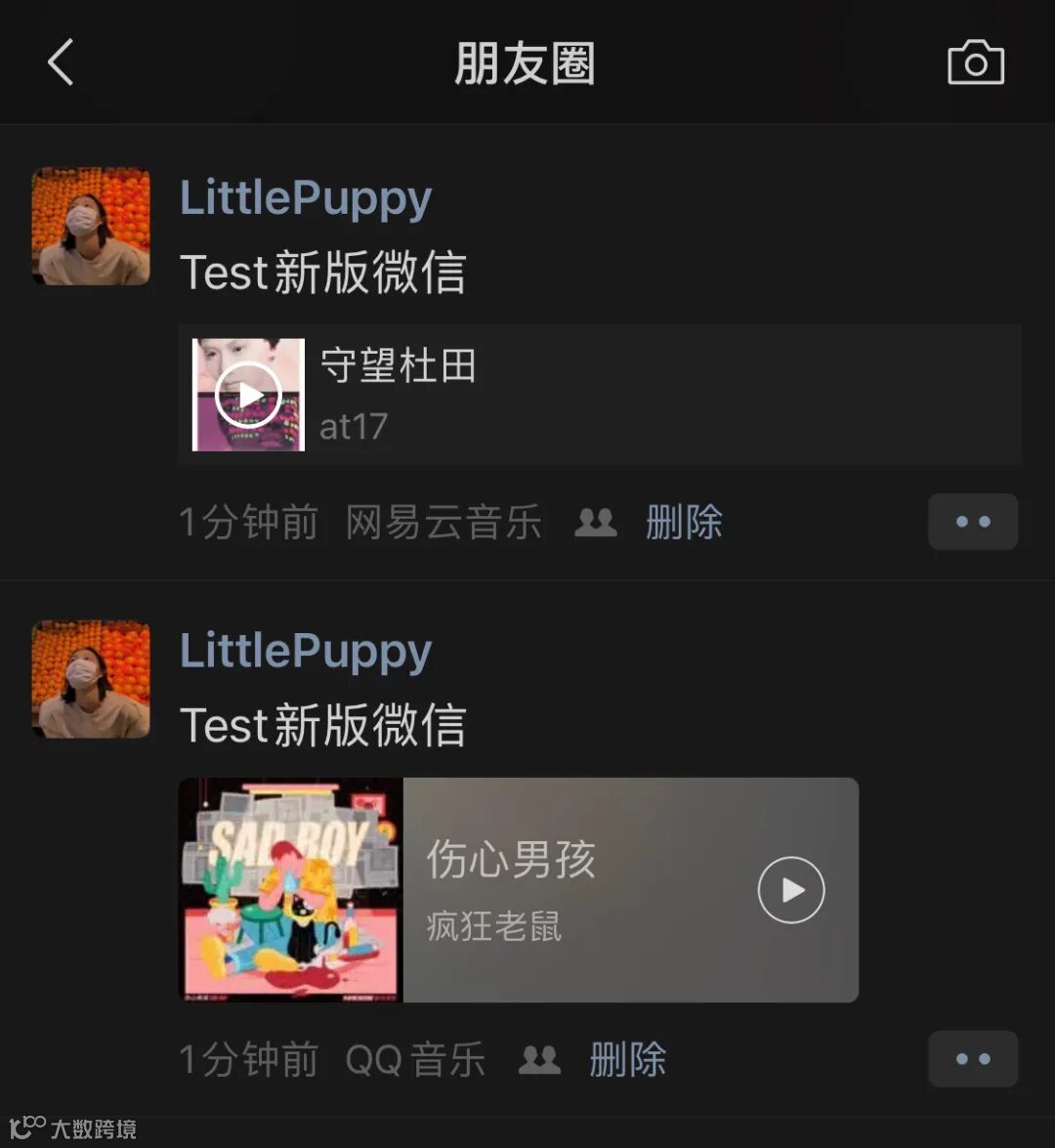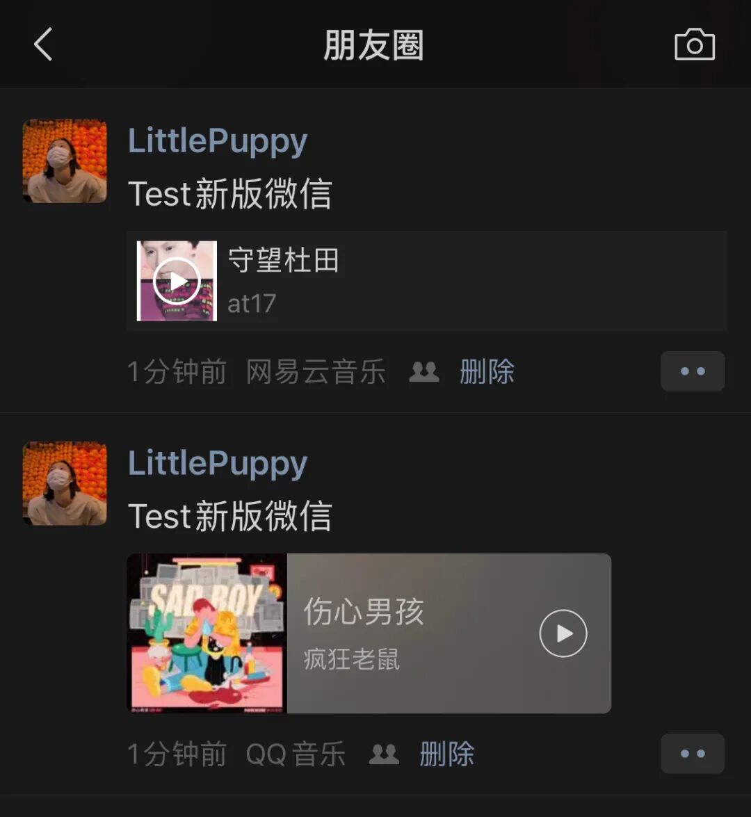 给好友或朋友圈分享歌曲时,腾讯生态体系的QQ音乐有单独的卡片设计,打开后还能在线创作音乐视频;而网易云音乐等三方音乐App还是之前的设计。