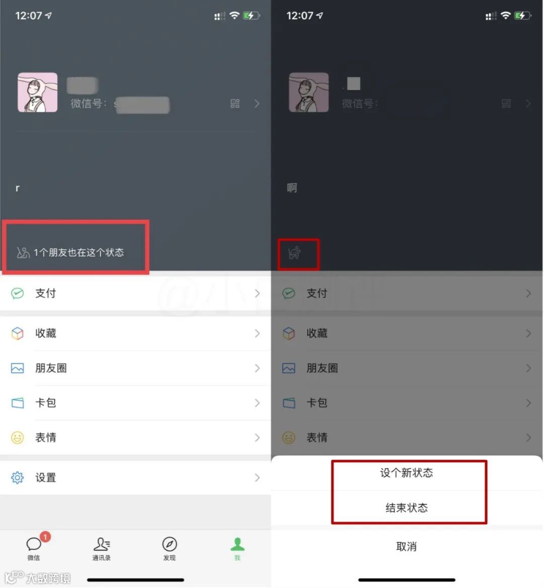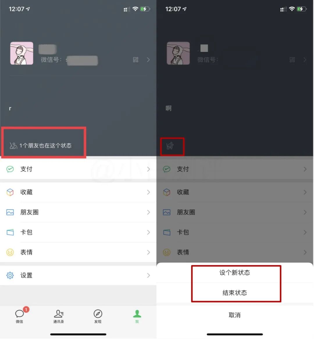 用户在设置状态时还能看到有多少好友也在用同状态,并能随时「设置新状态」和「结束状态」。