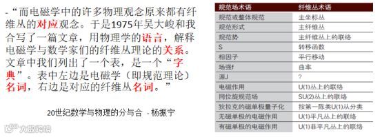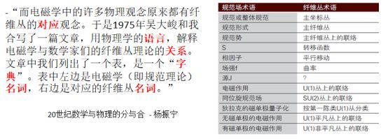 杨和吴把物理电磁学中的概念表示与数学纤维丛中的概念表示交叉关联,但从上图中可看到这种对映关联不是简单和表面上数据间的直接对映,而是经过人脑及其复杂、高度抽象的认知关联,把物理学和数学表面上看来完全不同的概念表示关联了起来。这是人厉害的能力和地方,包括如顿悟,类似的例子科学史中不少,尽管对它们发生的机制和过程还很不了解。这虽是个著名科学家间很抽象和跨度很大关联的例子,我们每个普通人在不同程度上都有与机器很不同的关联能力。
