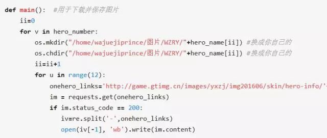 在该网址中只有str(v)与str(u)是改变的(str( )是Python中的一个函数),str(v)是英雄对应的数字,str(u)只是图片编号,例如第一个图片就是1,第二个就是2,第三个……而一个英雄的皮肤应该不会超过12个(可以将这个值调到20等)。接着就是下载了。