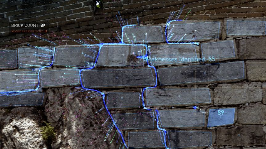 借助英特尔人工智能技术、英特尔猎鹰8+无人机技术以及英特尔®至强®可扩展平台,双方通过高清图像、数据和3D建模来对箭扣长城的城墙进行远程检查和制图,为其修缮、维护提供指导,并为以后的工作提供预测数据。