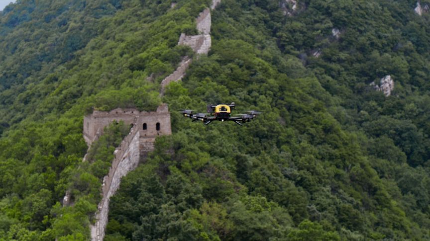 答:如果是按照传统的方法,无论是勘测、测量、后期的处理,只能凭借人力借助尺子、全站仪完成,耗时耗力,尤其是箭扣长城大多位于险峰断崖之上,周边草木茂密,人员想要到达施工现场可谓险阻重重。另外,传统的手工测量无法反映长城的全貌和细节,不利于保护单位做更精确的维修方案。
