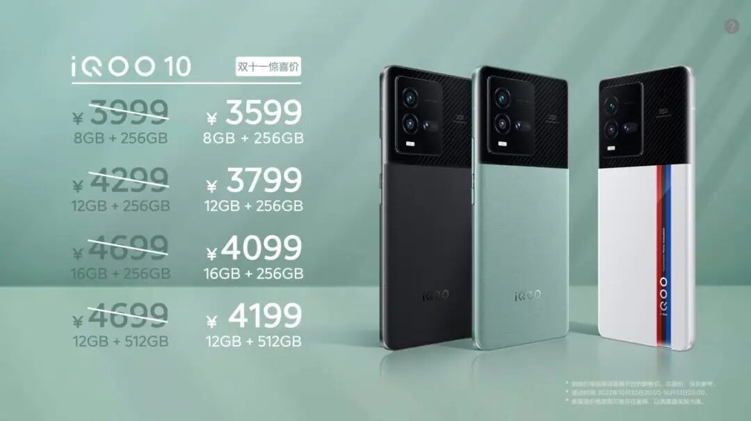 昨晚还发布了iQOO 10的两个新配色:「赛道特别版」&「曼岛特别版」,16GB+256GB版售价4099元,其他储存版本也为迎接双11进行了调价。不知道大家觉得调价后价格如何。