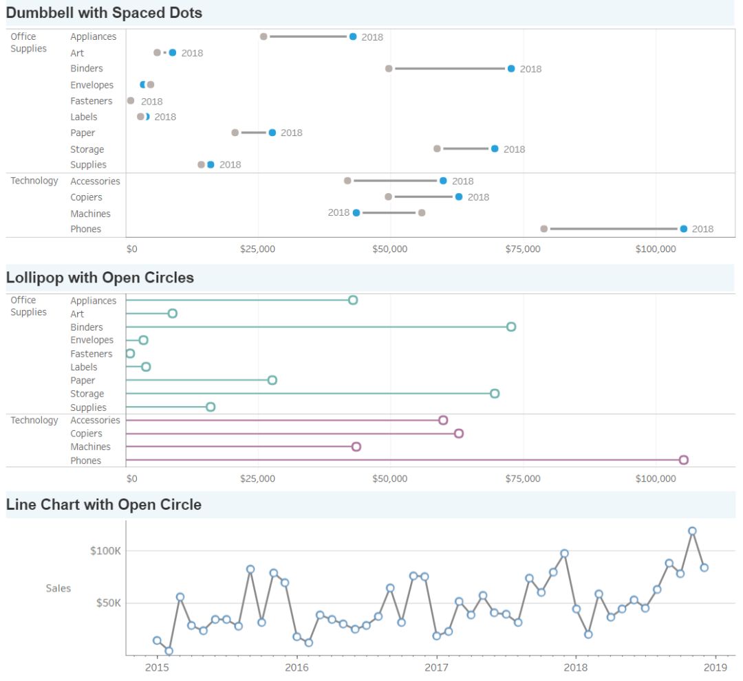 How to Make a Tadpole Chart and Other Charts in Tableau with Open Circles