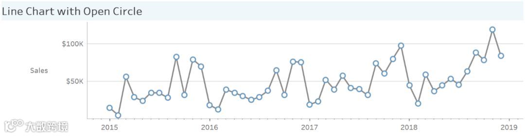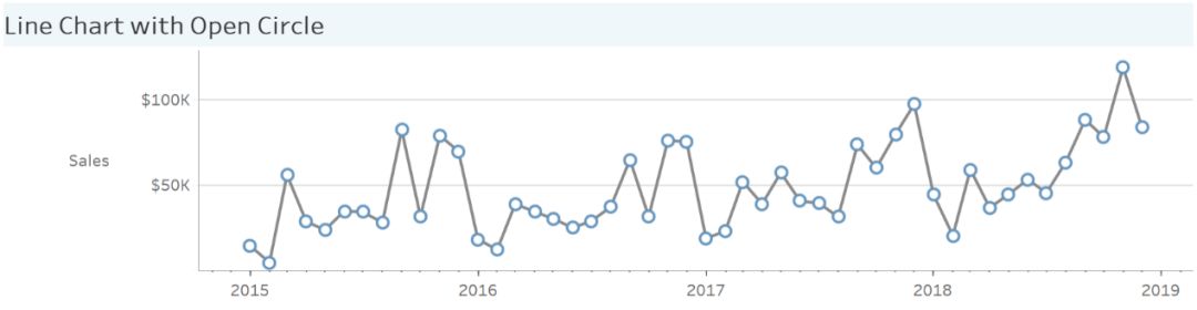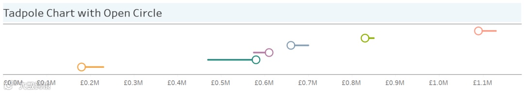 Mark的帖子概述了这种图表不同风格的优缺点,但他在这篇推特(https://twitter.com/EGCosh/status/997374330454593536/photo/1 )上询问如何让线停在圆圈的边缘,而不是进入到圆圈的中心。我之前遇到过这种情况并且多年来尝试过各种方法,所以我会分享自己一些的尝试和简单的解决方法,用于在Tableau中使用空白圆绘制蝌蚪图等图表。