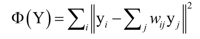 这样可以得到每个样本点与它邻居节点之间的线性组合系数。接下来将这个组合系数当做已知量,求解下面的最优化问题完成向量投影: