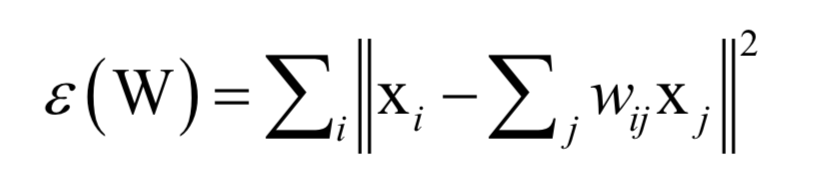 算法的第一步是求解重构系数,每个样本点xi可以由它的邻居线性表示,即如下最优化问题: