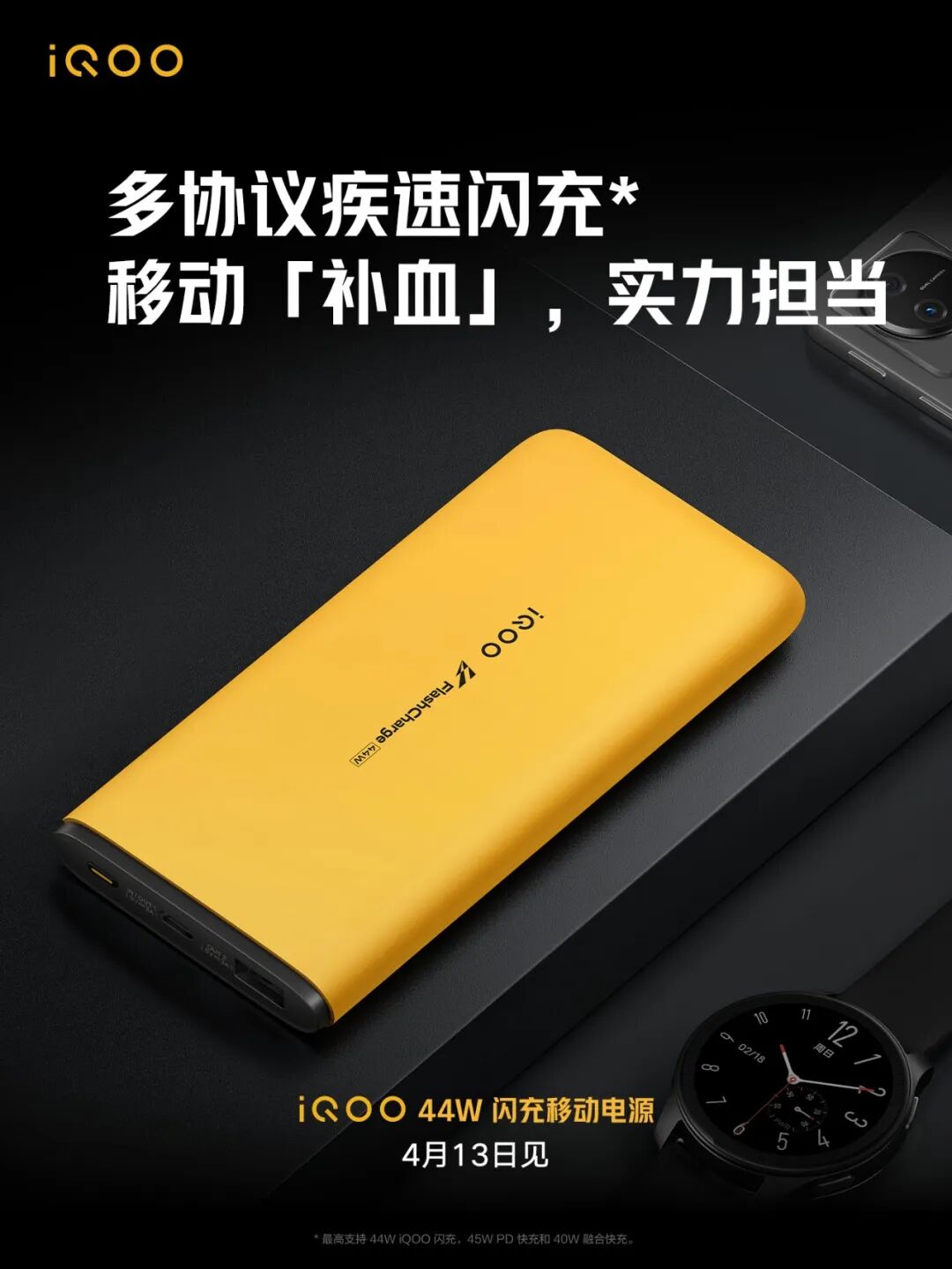 据iQOO预热,iQOO Neo6将配备4700mAh电池,采用双电芯80W闪充。同时发布会还将带来一款配件新品——iQOO 44W闪充移动电源:支持44W iQOO闪充、45W PD 快充、40W融合快充。