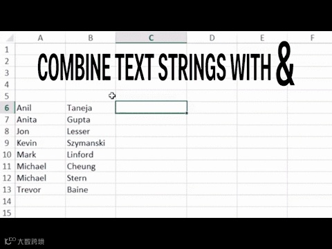我们现在拥有一列姓和一列名,我们可以使用“&”符号来创建一列合并姓和名的数据。在Excel中,“&”指将两个或两个以上的文本合并。别忘了在姓和名中间键入一个空格。你的函数应该看上去是这个格式的 =[First Name]&” “&[Last Name]。