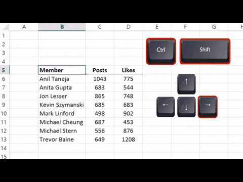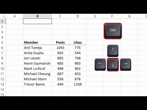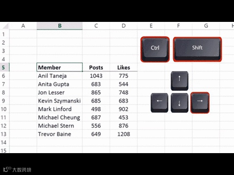 当然,你也可以只按方向键,然后一格一格地移。但如果你想快速转换单元格,在按方向键之前长按“Ctrl”,瞬间能达到“键步如飞”的效果。