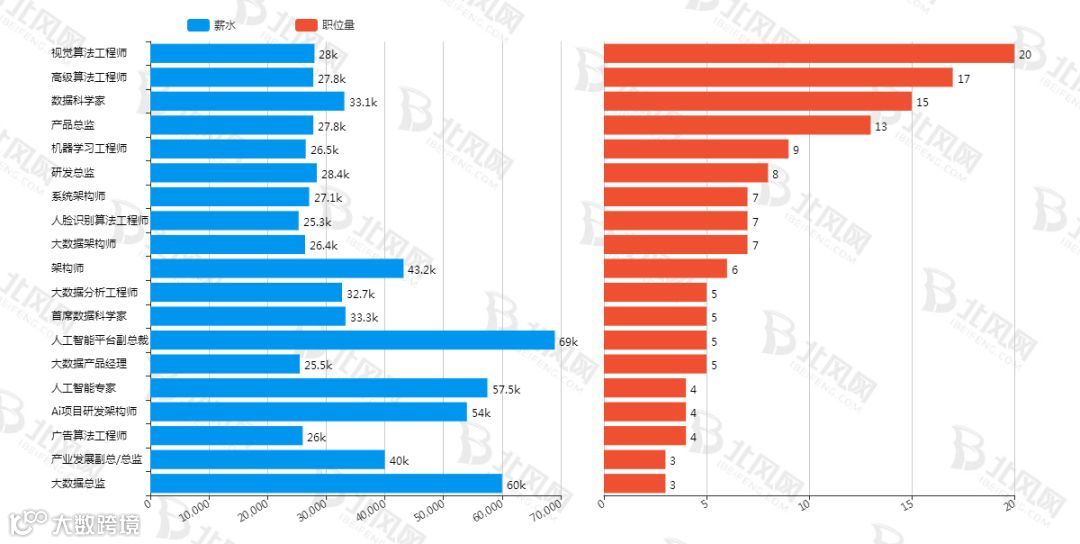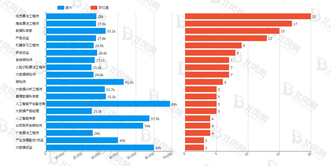 TOPN稀缺高端职位:稀缺高端职位薪水都在25k+,一般都偏算法或系统架构方向;职位需求量一般都在20以下。
