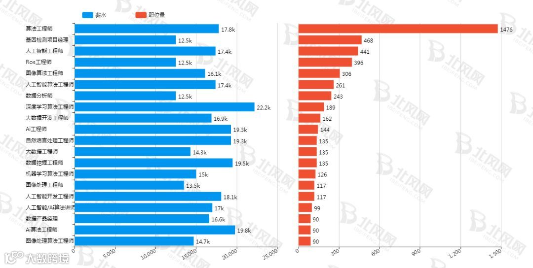 TOPN热门职位:人工智能行业热门职位薪水一般都在12k+,深度学习算法工程师均薪可以达到22k+;职位量方面,算法工程师需求遥遥领先。