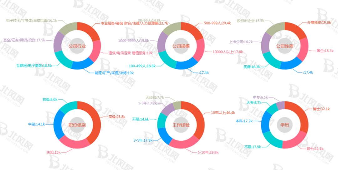 学历维度:学历越高,薪水越高,博士可达到32k+。