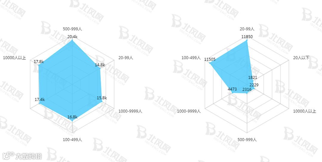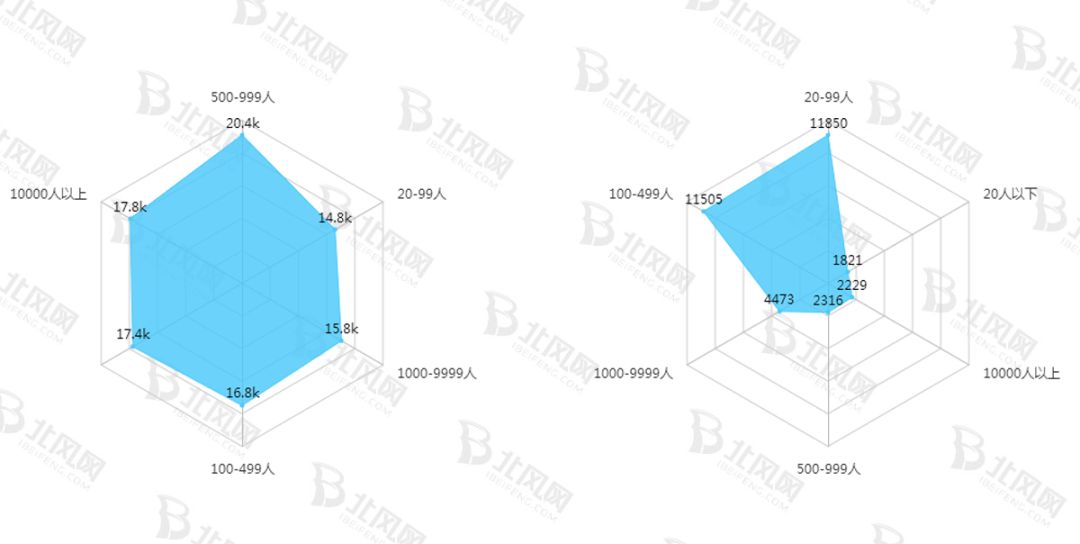 职位量维度:推荐重点关注100~499中小规模或20~99初创公司。